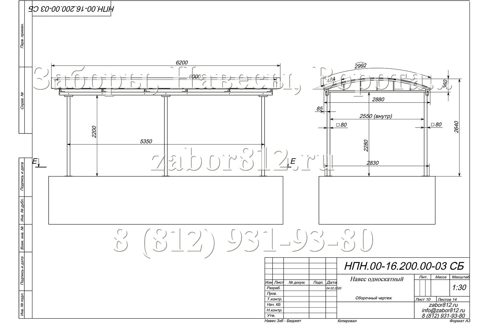 Все элементы навеса изготовлены на предприятии и не требуют доработки при монтаже