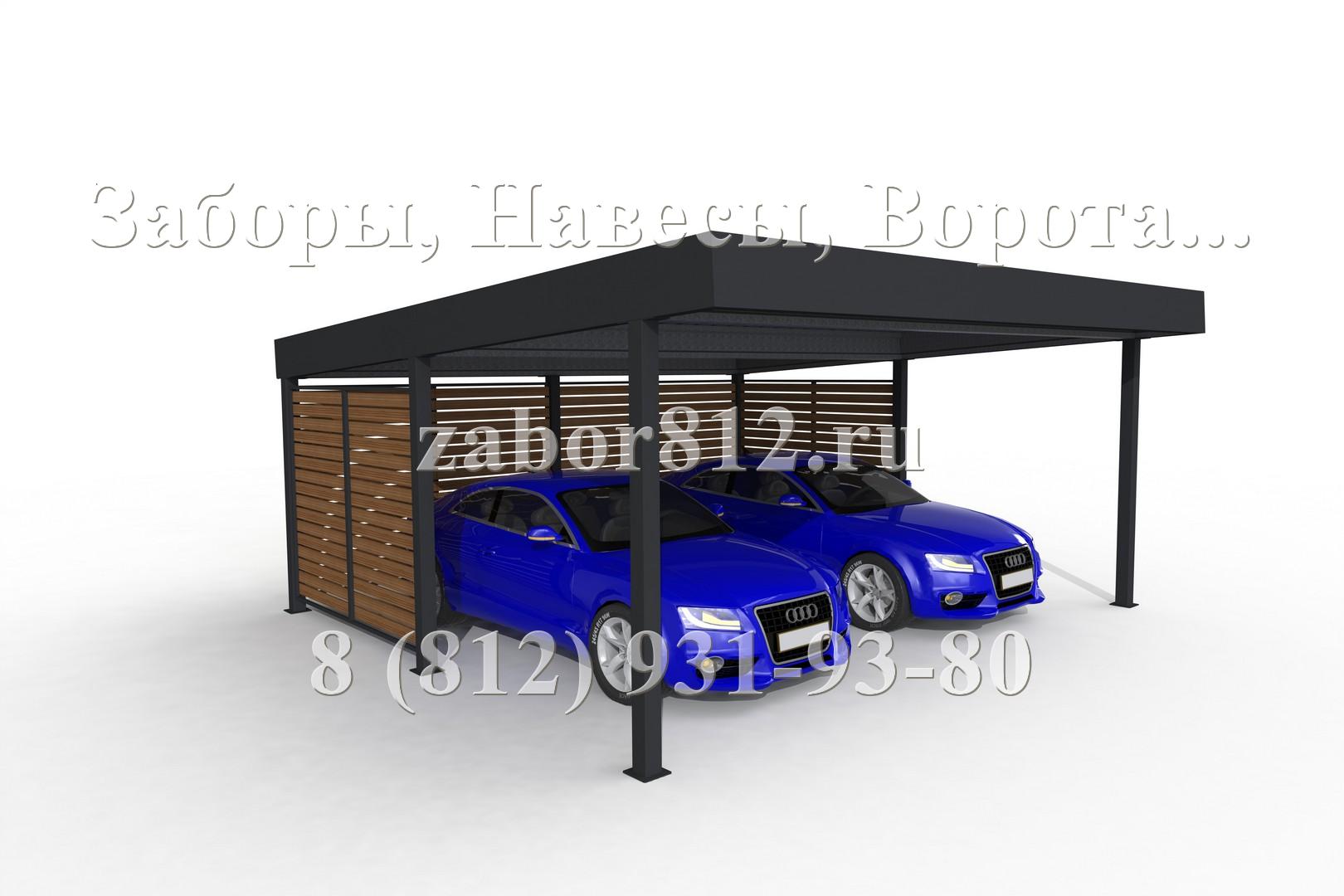 Навесы с плоской кровлей мы предлагаем в широкой гамме исполнений и отделки от просто навеса размером 6х3м, стоящего на 6 опорах, до больших комплексов со сложной геометрией и имеющих в своем составе, помимо парковочных мест для техники, отдельные места для хранения, хозяйственные помещения (хозблоки). Мы проводим постоянную работу над совершенствованием конструкции навесов и расширению номенклатуры предлагаемой продукции.