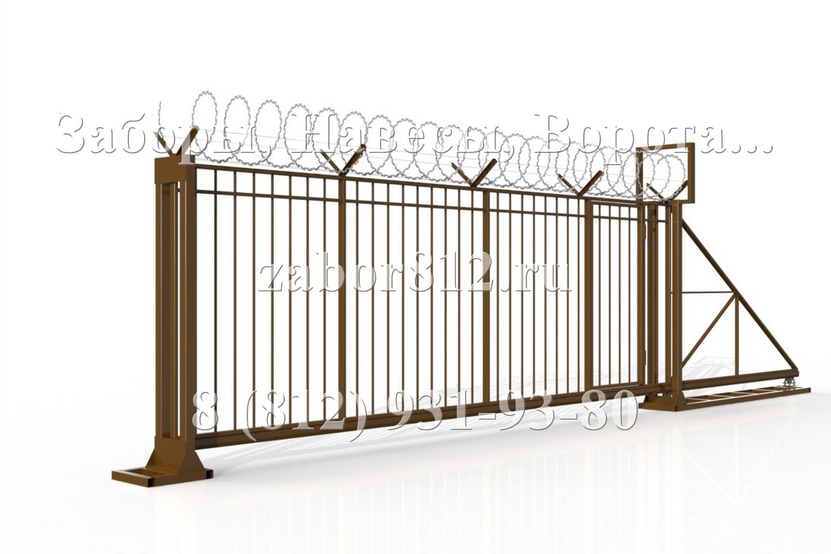 Ворота представляют собой металлическую раму прямоугольной формы и сваренную с ней хвостовую часть. Рама (каркас створки) изготовлен из профильной трубы с увеличенным сечением и толщиной стенки (если это требуется заказчику). Снизу каркаса створки приварена направляющая балка ("рельса") типа Евро производства компании Ролтэк. Заполнение ворот может быть разным: профнастил, 3D-панели, сварной усиленный.