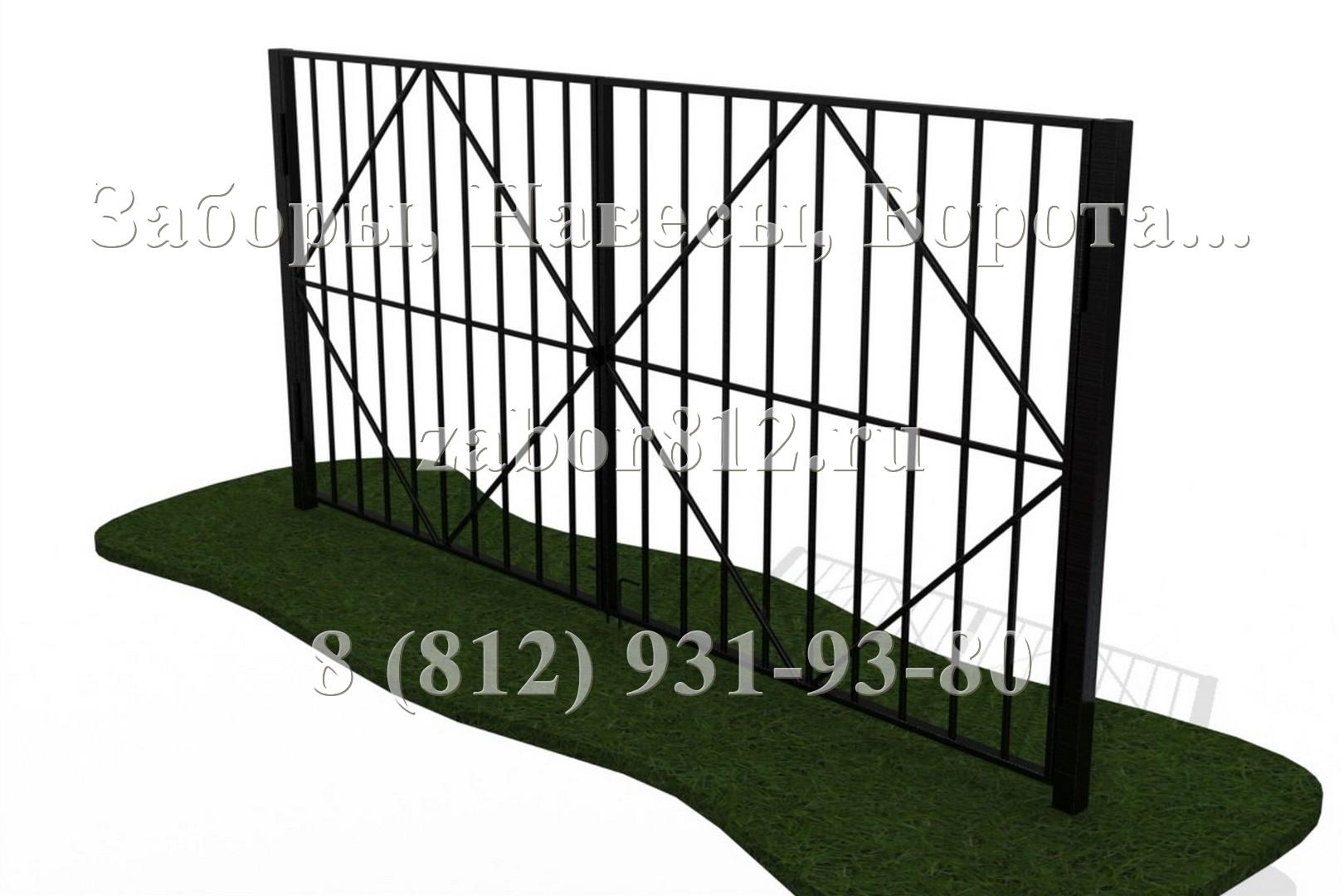 Ворота представляют собой две рамы, каркасы которых изготовлены из профильной трубы 40х40мм (60х30, 60х60мм). Декоративное заполнение внутри ворот может быть как в стиле установленного забора, так и иметь свой особый уникальный стиль. Опорные столбы изготовлены из профильной трубы 60х60мм (80х80мм, в исключительных случаях 100х100мм, и даже 120х120мм). Столбы монтируются либо на закладных, забетонированных на месте установки ворот, либо на фундаментную ленту. Фундамент должен быть правильно и точно рассчитан, исходя из размеров и массы будущей конструкции, и выполнен из качественных материалов. Он является основой в буквальном смысле слова. Под заказ мы можем произвести покраску с элементами декоративной отделки. Ворота могут быть доукомплектованы "ушами" под навесной замок, вертикальными стопорами, задвижками.